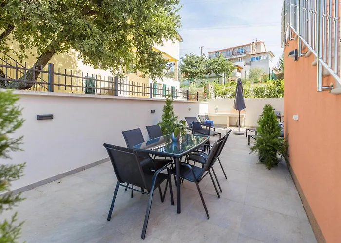 Luxury Three Bedrooms Apartment Silver Suite Near Poreč med 1 sovrum, som vetter mot trädgården, ligger 4 km från Trg Marafor i Poreč. Den 85 m² stora lägenheten har en terrass som vetter mot trädgården.